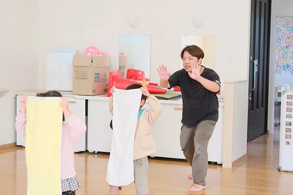 放課後等デイサービスでの1日の仕事の流れを教えてください。はい。午前中は、曜日によって児童発達支援(未就学児対象の療育支援)を行なっているため、申し送りから事務作業や支援準備を行い、児童発達支援の対応も行います 。午後からは、学校へお迎え → 来所・宿題サポート → 個別活動や集団活動(SST、運動など) → おやつ → ご自宅へ送迎となります。空き時間で、その日の支援記録の作成やミーティングを行います。