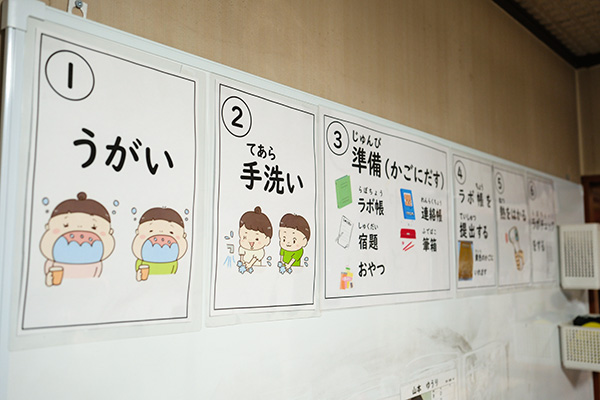 きらりの方針である「見る」「聞く」「待つ」を徹底することで、子どもたちの姿勢や表情が変わります。この3拍子を日々唱えながら子どもたちと向き合っています。