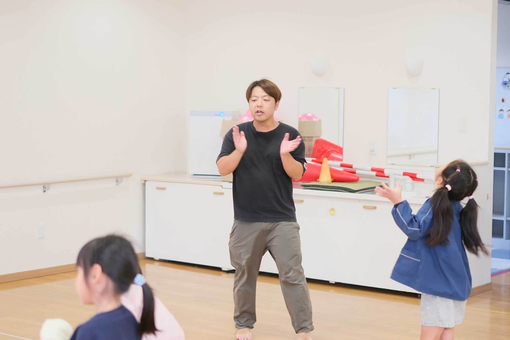 先輩から教わった、基本である「見る・聞く・待つ」を実践することです。この基本に取り組むことで、子どもたちの「楽しい!」という気持ちを引き出せるよう、意識しています。
